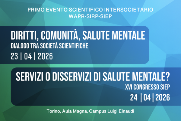 Venerdì 24 aprile 2026 i lavori proseguiranno con il XVI Congresso della SIEP (Società Italiana di Epidemiologia Psichiatrica) che, con un titolo provocatorio “Servizi o disservizi di Salute Mentale?” affronterà le sfide attuali con le quali si confrontano quotidianamente i Dipartimenti di Salute Mentale.
